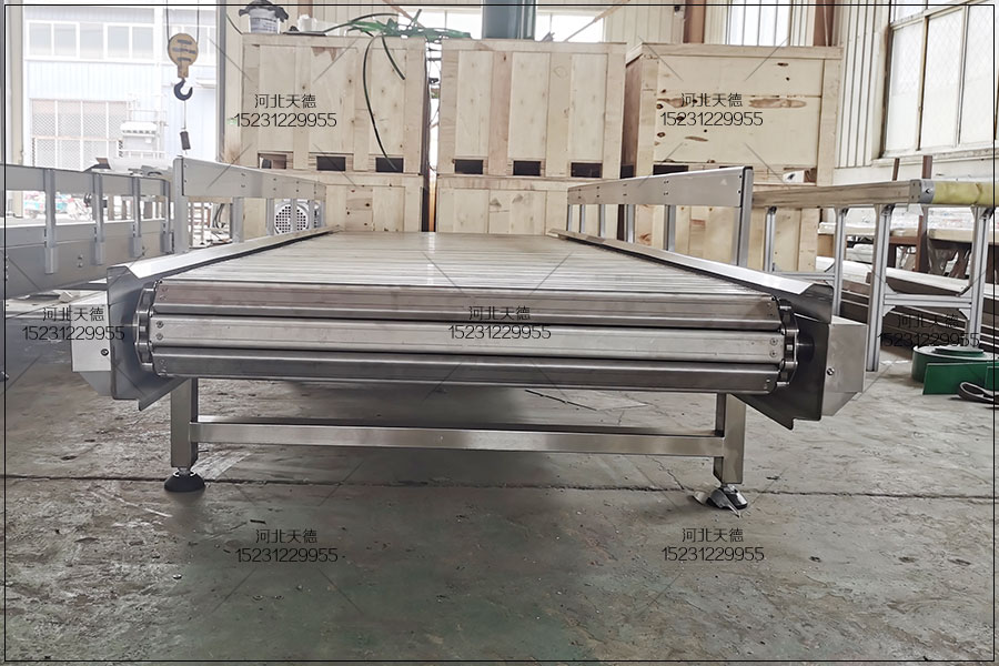 4、傳動(dòng)鏈條合理布局純真,傳動(dòng)鏈條能夠在一條輸送機(jī)上進(jìn)行水準(zhǔn)、歪斜和拐彎運(yùn)輸。