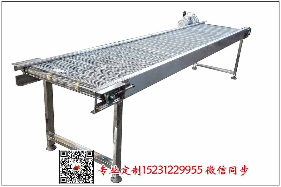 羊毛分揀線采用不銹鋼輸送帶來輸送,其結(jié)構(gòu)形式可以采用鏈條式鋼絲編織型輸送網(wǎng)帶,該輸送網(wǎng)帶孔徑可調(diào),絲徑可調(diào),鏈條節(jié)距可調(diào),訂購隨意簡單,以下是客戶訂購的鏈條式不銹鋼網(wǎng)帶的訂單數(shù)據(jù),希望能給大家做個參考: 鏈條式不銹鋼輸送帶總寬為800毫米,長度為30米 鏈條節(jié)距為38.1毫米(滾珠到滾珠的距離) 鋼絲輸送網(wǎng)帶孔徑為10*15毫米,孔徑可以根據(jù)自己的需要定制不銹鋼網(wǎng)帶的絲徑為1.2毫米,支軸直徑為8毫米,因為輸送網(wǎng)帶相對較寬,因此支軸的選擇不能太細(xì),否則會出現(xiàn)塌腰的情況,支軸之間的距離為15公分左右。