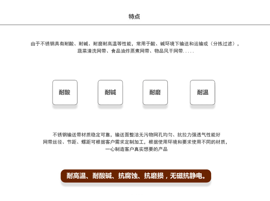 不銹鋼網(wǎng)帶屬于非標準件,我們將根據(jù)你提供的規(guī)格長寬,材質,絲徑,編制結構尺寸,支軸直徑,支軸間距,鏈條型號等數(shù)據(jù)核算成本和制作.