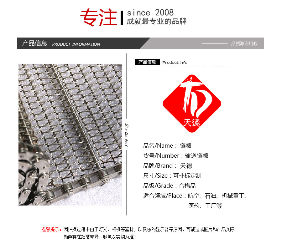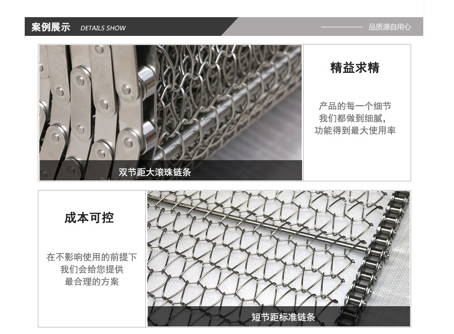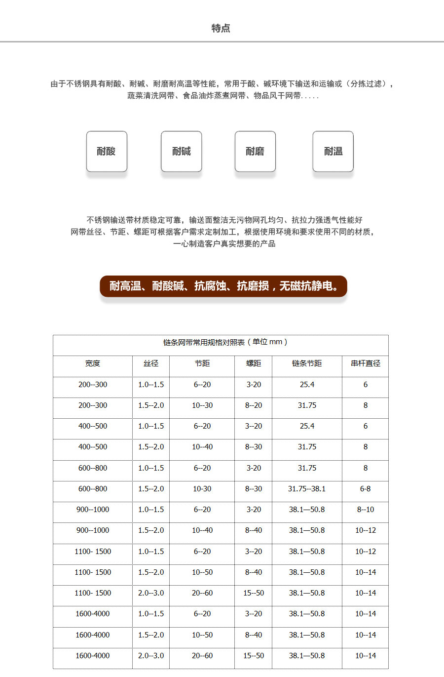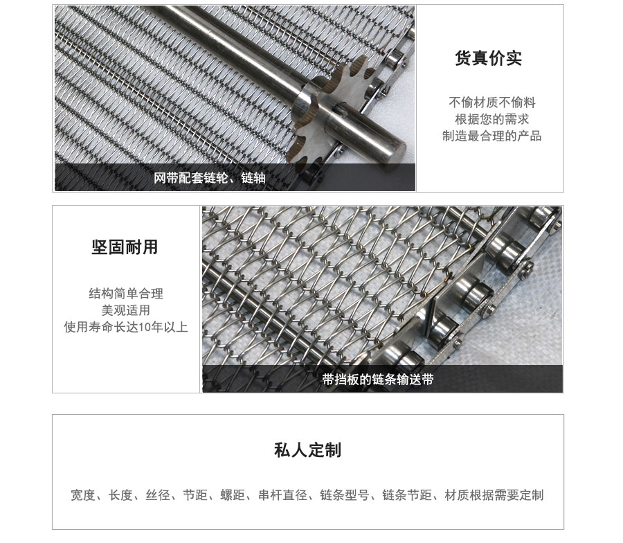 廣泛用于玻璃制品行業(yè)的退火爐網(wǎng)帶、烤花爐網(wǎng)帶等。食品加工行業(yè)、脫水蔬菜、速凍食品單凍機(jī)前處理網(wǎng)帶、鏈網(wǎng)。粉末冶金、金屬熱處理、淬火、燒結(jié)、釬焊、焙燒、光亮、發(fā)黑、軸承、滲碳高溫爐網(wǎng)帶、擋板式網(wǎng)帶、涂裝烘干線輸送網(wǎng)帶、泡沫鎳還原生產(chǎn)線網(wǎng)帶,清洗機(jī)、提升機(jī)、干燥機(jī)、烘干機(jī)、固化爐網(wǎng)帶。